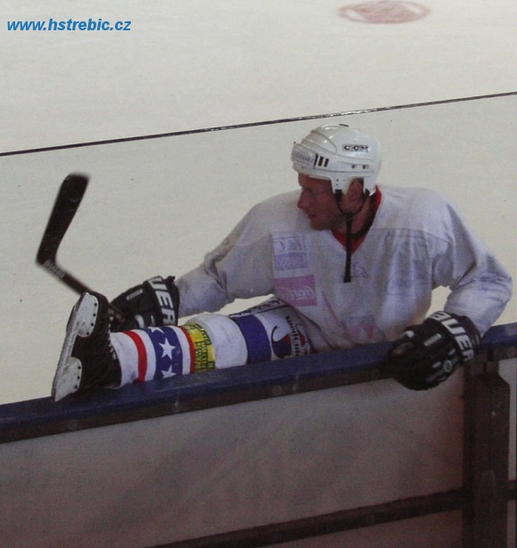 Strečink patří ke konci tréninku stejně, jako pořádná a zasloužená sprcha. Na snímku Zdeněk Sedláček.