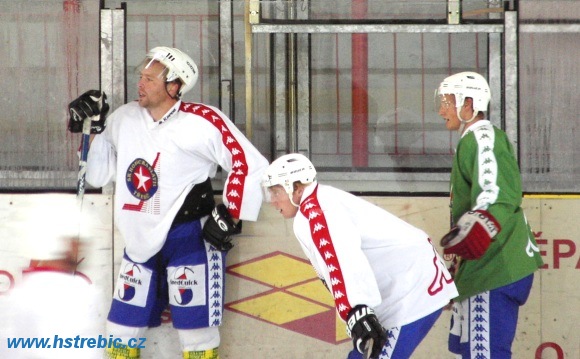 Zatímco Michal Pešek se rozjíždí k dalšímu cvičení, ostatní hráči vydýchávají to předchozí.