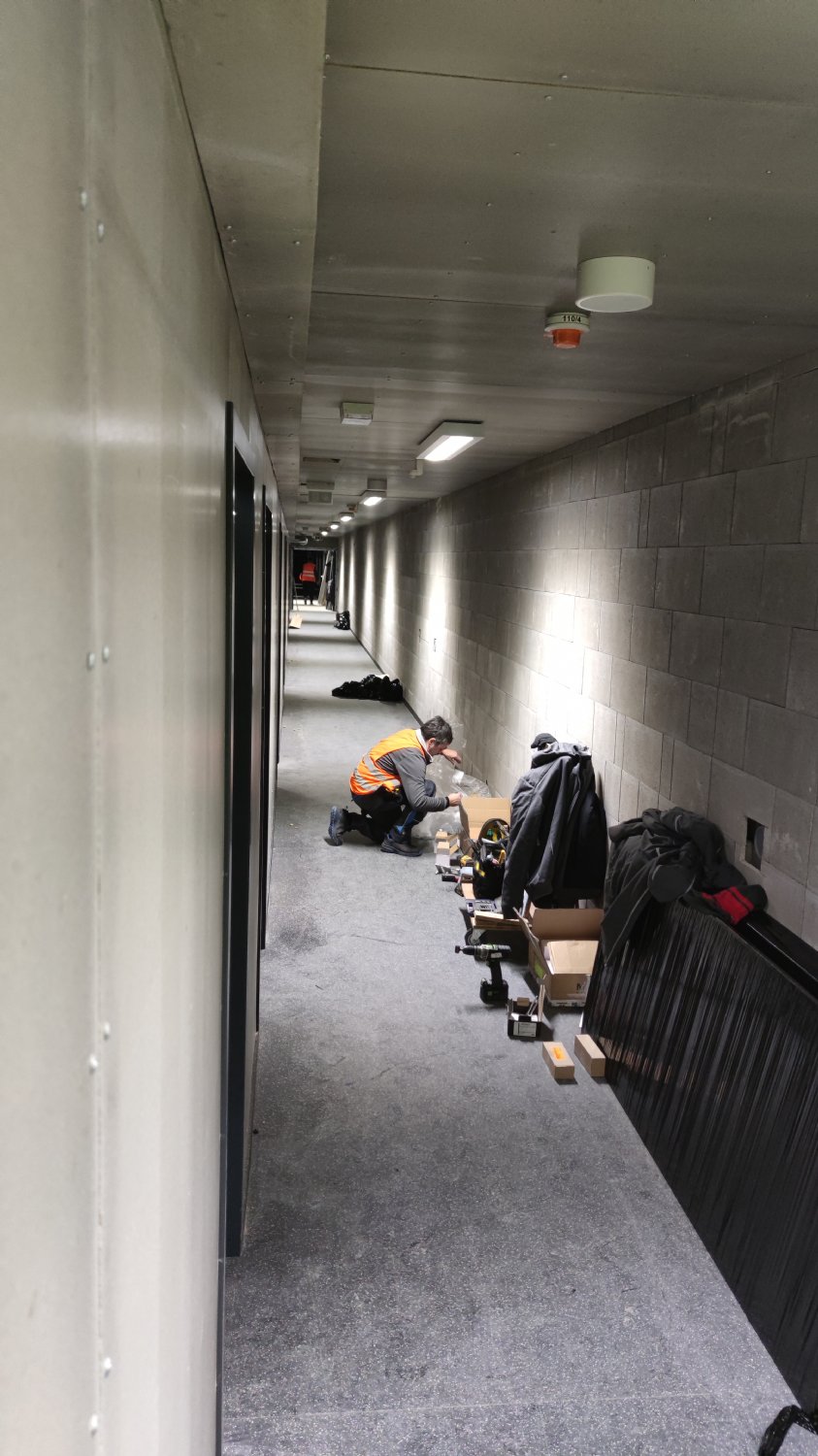 Osazuje se nejen podlahová krytina, ale i dveře do jednotlivých kabin