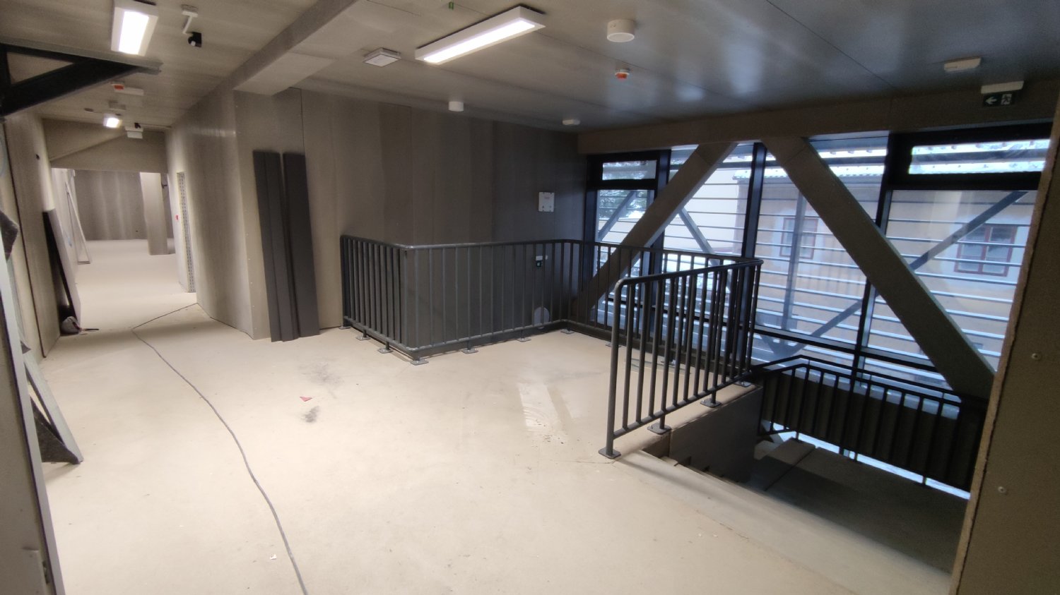 Chodba do kabin žákovských mužstev, nových kabin je osm