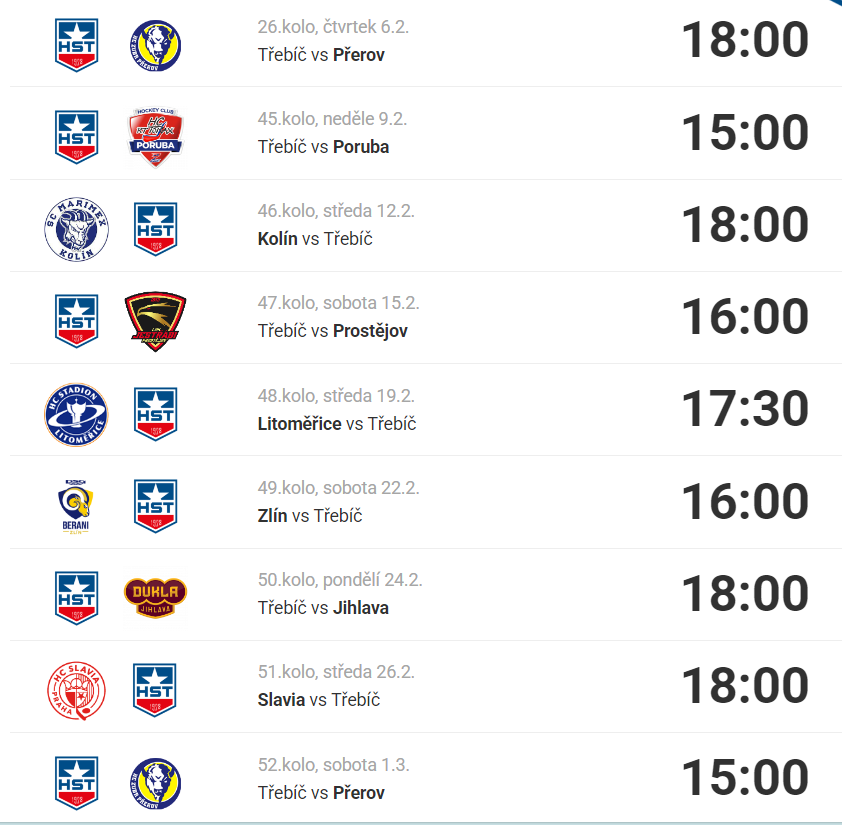 Třebíčští hokejisté zatím drží parádní čtvrtou pozici tabulky. Její udržení ale bude ještě hodně těžké. V závěrečné fázi soutěže se totiž utkají jak s týmy z čela tabulky, tak s týmy z jejího suterénu bojujícími o holé přežití v lize, ale také s mužstvy, která bojují o účast v play off. Nic lehkého. Závěr základní části tedy bude hodně zajímavý a vyhrocený. Popřejme našim borcům do příštích zápasů hodně štěstí, pevné zdraví a přesnou mušku.