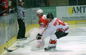 Na první branku se čekalo pouhých jedenáct vteřin. David Dolníček přihrál na střed Lašovi a ten střelou z mezikruží poslal červenobílé do vedení – 1:0. Hosté mohli vyrovnat při přesilové hře, Klimešova střela od modré po špatném vyhození však nemohla Luňáka ohrozit. Naopak Horácká Slavia mohla zvýšit svůj náskok, čtyři domácí jeli na dva bránící hráče Panterů, v poslední chvíli však zmařil ideální přihrávku Ščerbana na Dolníčka hostující obránce. Na druhé straně neprostřelil Luňáka Sikora. V šesté minutě byl vyloučen havířovský Hamrák a Marek Novotný v brance Panterů měl plné ruce práce. Nejprve vyrazil střelu Látala, poté i Ščerbanův pokus a nepřipustil skórovat ani Olivovi, který se proháčkoval až před něj. V deváté minutě jeli hostující Hamrák a Škumát na jediného obránce, Luňák si však se střelou druhého jmenovaného poradil. O chvíli později elegantně tečoval Dolníček, puk však trefil pouze brankovou konstrukci. Ihned poté však nadělal tentýž hráč Novotnému další starosti, neboť objel branku, betonem vyražený puk měl i nadále na hokejce a potáhl ho před brankovištěm – i když hostující brankář ležel, puk mezi tři tyče však neusměrnil a minul. Novotný zneškodnil i střely Hrbáčka a Dibelky. Ve dvanácté minutě pálil od modré Dresler, Luňák byl však připraven. Elegantně do lapačky zneškodnil o pár chvil později střelu Klimeše od modré. Na druhé straně se štěstím vyrazil Novotný střelu Laše a ani Ščerbanovi nedovolil skórovat. Hosté se dočkali vyrovnání dvě minuty před koncem třetiny. Luňák jel za branku pro puk, ten se však těsně před ním odrazil od mantinelu směrem před prázdnou svatyni Třebíče a Hamrák ji nemohl netrefit – 1:1. Když pak na druhé straně neprostřelil Novotného Kubica, skončila první třetina.V té druhé pálil nebezpečně z otočky Brynecký, Luňák byl však na svém místě. Ve druhé minutě si vyměnili puk Dibelka s Dolníčkem, jeho brankovou příležitost však zastavilo hákování hostujícího hráče. Nabídnutou přesilovou hru Horácká Slavia nevyužila, naopak inkasovala z hole Petra Rozuma. Ten ve vlastním oslabení ujel, položil si Luňáka a bekhendem pod břevno nekompromisně skóroval – 1:2. Hosté se však neradovali z vedení dlouho. O minutu později totiž nahrál Dibelka zpoza branky Lašovi a ten střelou přes obránce prostřelil Novotného – 2:2. V osmé minutě mohl poslat do vedení Horáckou Slavii Oliva, když střílel přes obránce. Novotný se jen ohlížel za pukem, ten však těsně minul branku hostů. Ohrozit Luňáka nemohla na druhé straně střela Zdeňka, ihned poté zblízka minul Žák. Na druhé straně vyrazil Novotný Čechovu střelu z otočky. V jedenácté minutě přihrával Šefčík od modré zadovkou Olivovi, ten však na Novotného z úhlu nevyzrál. O minutu později však už Novotný kapituloval z hole Látala. Petr Zahradník mu z pravé strany přihrál na střed a ten střelou do prázdné branky – Novotný se nestihl přemístit – poslal domácí do vedení – 3:2. V oslabení mohl zvýšit Oliva, netrefil však prudkou přihrávku Šefčíka při přečíslení tři na dva. Vyrovnat mohl Škoda z kruhu, Luňák střelu z jeho hole udržel. V patnácté minutě předvedl efektní stahovačku na modré Šefčík, střílenou přihrávku však Oliva netrefil a Novotný bez problémů betonem vyrazil. O dvě minuty později si řekl Dolníček o puk Dibelkovi, dostal milimetrovou přihrávku, střelou z první však těsně přestřelil. Rozvlnit síť musel až Michal Pšurný, když po přihrávce aktivního Dolníčka střelou prakticky do prázdné branky zvýšil na 4:2 pro domácí. Luňák poté s problémy vyrazil ramenem bekhendovou střelu Škody. Minutu před koncem třetiny pálil od modré Ščerban, puk tečoval hostující obránce a nadělal tak velké problémy Novotnému, ten sice se štěstím vyrazil, i dorážku Dolníčka, na další střelu Ščerbana od modré, který prostřelil vše, co mu stálo v cestě, však už nedosáhl – 5:2.