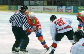 Ve třetí třetině mohl snížit Galvas, od modré však minul. Poté se elegantně proháčkoval až před Novotného Zahradník, na něm si však vylámal zuby. Skórovat mohl i Dolníček, když svým typickým způsobem objížděl branku, puk mezi tři tyče však neprotlačil a Novotného poté neprostřelil ani Dibelka bekhendem. Hostující brankář udržel se štěstím i střelu Vomely od modré. Po ose Laš – Dolníček – Hrbáček mohl skórovat posledně jmenovaný, puk však skončil v moci Novotného. I další Hrbáčkovu střelu brankář Panterů se štěstím kryl. Ve třinácté minutě snížili hosté. Luňák totiž neudržel lehkou střelu Rozuma – puk mu prošel mezi betony a dokutálel se za brankovou čáru – 5:3. Domácí brankář však další snížení nepřipustil. Vyrazil Heiderovu střelu, kterou neviděl. Hosté mohli ještě snížit, ale nabídnutou přesilovou hru nevyužili. V oslabení naopak přibruslil hostujícího Galvase Zahradník a jeho brankovou příležitost musel hostující obránce překazit za cenu faulu. Tentýž hráč byl po návratu na led vyloučen ještě jednou, tím připravil svůj tým o možné zdramatizování. Horácká Slavia tak bez problémů zvítězila a připsala si povinné tři body.
