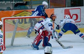 Pro Třebíčské byla první třetina sladkým snem,pro Brněnské naopak snem hodně černým. Do šesté minuty se hrál vcelku vyrovnaný hokej. Pak se ale domácím povedlo nastřílet ve třech minutách tři krásné branky. Nejprve se po úniku po pravé straně trefil z nulového úhlu Adam Zeman a brankář Komety Čiliak se musel pod maskou hodně červenat, protože si nedokázal pohlídat levou tyčku a možná puku i sám do branky pomohl. Třebíč tak vedla 1:0 a na časomíře svítilo 06:58. Už přesně o deset vteřin později se domácí mohli radovat podruhé. Tentokrát po ukázkově provedeném přečíslení a akci dva na jednoho skóroval Jakub Klíma - 2:0. Asistenty mu byli Karel Kesner a Tomáš Vondráček. V deváté minutě si uvedená trojice role vyměnila Přihrávku zpoza branky proměnil ve třetí gól Třebíče Tomáš Vondráček, přihrávali Jakub Klíma a Karel Kesner. Rychlé vedení domácího celku 3:0 přinutilo kouče Komety k tomu aby si vybral oddechový čas a svým svěřencům domluvil. Ani to však nebylo příliš platné, protože domácí byli na koni a Kometa byla z vývoje utkání hodně zaskočená. Ve třinácté minutě navíc Třebíčští vstřelili čtvrtou branku opět po přečíslení dva na jednoho. Tentokrát střelou mezi Čiliakovy betony zakončoval svou druhou brankou v utkání Adam Zeman, přihrával mu Adam Pometlo - 4:0. Po této brance došlo na straně hostů ke střídání brankářů. Odstoupil Čiliak a do brány šel Machala. Kometa se snažila ještě do přestávky snížit a málem se jí to i povedlo. Největší šanci k tomu měli modrobílí v sedmnácté minutě, ale skákající puk před prázdnou brankou útočník Komety netrefil a tak se po první přestávce šlo do kabin za pro domácí velmi příznivého stavu 4:0.Druhá třetina začala pro domácí nepříjemností v podobě první branky v jejich síti a to již v pětadvacáté sekundě. Autorem branky byl Tomáš Popolanský, který byl na brankovišti nejdůraznější a puk za Mikulku doslova dotlačil - 4:1. Třebíčští hráči si varování Komety vzali k srdci a snažili se hrát co nejdále od své brány, ale brněnští hokejisté byli v této fázi zápasu hodně nebezpeční. V brance Horácké Slavie však byl dnes výborný Leoš Mikulka, jenž několika výbornými zákroky vychytal několik jasných šancí útočníků Komety a nedopustil tak další změnu skóre. Domácí jakoby brankářova jistota povzbudila k větší útočné aktivitě a jejím výsledkem byl pátý gól v brněnské síti. Tomáši Vondráčkovi zpoza brány mezi kruhy parádně naservíroval Jakub Klíma a ve 28. minutě to bylo už 5:1 pro Třebíč. V dalším průběhu druhé třetiny již branka nepadla, a to hlavně díky třebíčskému brankáři Mikulkovi, který hlavně v přesilovkách musel řešit velmi složité situace, ale vždy se mu to ve spolupráci s obranou povedlo bez inkasované branky. Po druhé siréně tak byl brankový rozdíl mezi oběn¨ma týmy opět čtyřgólový a to v poměru 5:1.