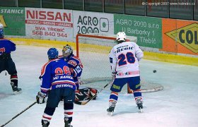 Hned v první minutě třetí třetiny hráli hosté přesilovku, kterou Horácká Slavia dokázala ubránit. Hosté jakoby ve třetí třetině začali důsledněji bránit, protože domácí hráči se s obtížemi dostávali do útočného pásma. Ostravané měli na začátku třetiny navrch. Důkazem toho byla i šance hostujícího Zubera, který nadvakrát nepřekonal domácího brankáře Mikulku. Ve 48. minutě se domácím opět podařilo vyrovnat. Ve 48. minutě se sice Třebíčským nepodařilo proměnit přečíslení, ale po akci pohotově dorazil kotouč za záda hostujícího brankáře domácí Petr Krutiš- 3:3. Třebíč se po této vstřelené brance hnala do útoku, ale další nadějně vypadající šanci zastavil hvizd čárového rozhodčího, který odpískal ofsajd. V 59. minutě se domácím naskytla možnost přesilové hry, která jim dávala šanci zvrátit skóre celého utkání. Ale ani tato přesilová hra se třebíčským dorostencům nepodařila a utkání tak dospělo do prodloužení.