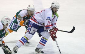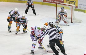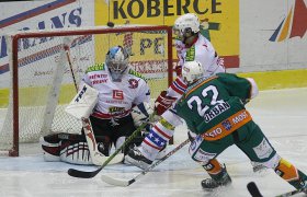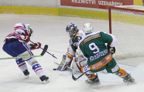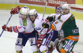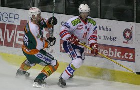Prví brankovou příležitost si připsal domácí Zahradník, z kruhu však na Cháberu v brance hostí nevyzrál. Ani tečované střely Hrbáčka a Lukáše Slámy neznamenaly změnu skóre. Když pak trefil Lukáš Sláma z kruhu tyč, udeřili poprvé hosté. Po kombinaci trojice Metlička – Sýkora – Plachý posledně jmenovaný překonává střelou pod vyrážečku Luňáka – 0:1. Blízko další branky byla opět dvojice útočníků Metlička – Sýkora, třebíčský brankář však čaroval na brankové čáře. I tentokráte platilo nedáš – dostaneš. Zahradník přiťukl kotouč před branku Látalovi a ten střelou z první vyrovnal – 1:1. Když pak neprostřelil Martínek od modré Luňáka a netrefil se ani Kudrna z kruhu, ujel v oslabení Oliverius, puk mu však v rozhodující chvíli utekl… Toho využili tentokráte hosté a v čase 14:54 opět vedou. Jiří Kudrna poslal z kruhu nechytatelnou střelu do šibenice – 1:2. Když pak nepřekonal Cháberu zblízka Přibyl, překvapil Luňáka zpoza branky Metlička – 1:3. Snížit mohl na konci třetiny Dolníček, když se natlačil před branku, na Cháberu však nevyzrál.Do druhé dvacetiminutovky nastoupila Třebíč aktivněji – po kombinaci Přibyl – Dolníček ukryl však Chábera kotouč do lapačky. Ztroskotala i dvojice Dibelka – Přibyl. Ani Bulička hostujícího brankáře nepřekonal. Poté mohli udeřit hosté, když se ve stoprocentní brankové příležitosti ocitl Urban, osamocen před brankářem však přestřelil. Při oslabení domácích ujela dvojice Dolníček – Nahodil, druhý jmenovaný volil střelu po zemi do protipohybu, tu ale Chábera vyrazil betonem. Konec třetiny patřil hostům, Prošek, Buďa ani dvojice Sýkora – Kudrna ale Luňáka nepřekonali.