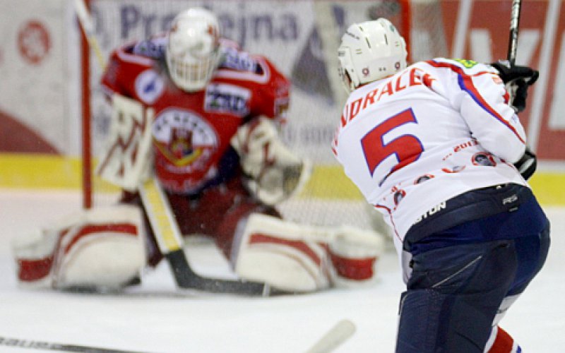 V 7. minutě šel pykat Burian. V oslabení mohl otevřít skóre Ostřížek, jenže neuspěl ani s opakovanou střelou. Na druhé straně dostal na levém kruhu prostor Roman Vondráček, který namířil přesnou střelu pod Čiliakovu lapačku. Třebíčští se dostali do mírného útlumu. Polodnovi nabídnul šanci chybující Káňa. Za okamžik hosté vyhráli vhazování a Lukáš Havel pálil do černého.