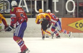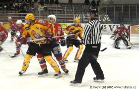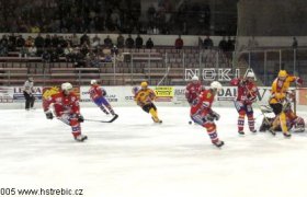 Dukla Jihlava ve středu přivítala na ledě svého největšího rivala z Vysočiny tým SK Horácká Slavia Třebíč. První derby dopadlo lépe pro Třebíč, a tak jihlavští hokejisté měli cíl jasný: oplatit v domácím prostředí hostům porážku. Do zápasu vstoupili v lepším tempu domácí. Ve 4. minutě měl velkou šanci vstřelit první branku utkání Daniel Hodek, když dostal od Bakuse přihrávku na brankoviště, ale puk tečoval příliš vysoko. Třebíč působila dost nejistě, v úvodu nedokázala správně rozehrávat a vytvářela tak spousty zakázaných uvolnění. Do první větší šance se dostal hostující Pavel Pelán, ocitl se před Suchanem a snažil se silou puk protlačit do branky, ale jihlavský brankář si prostor mezi tyčemi pohlídal. V 11. minutě se do obranného pásma Třebíče vrhnul Roman Hlouch, dostal se až k zakončení, ale Šindelář jeho střelu dokázal vyrazit. Vzápětí šli do útoku hosté: Sobotka periferně viděl volného Pelána, ale ten z mezikruží netrefil branku. Při jihlavské přesilové hře se na modré napřáhl Pavel Staněk, ale obránce hostů obětavým zákrokem puk srazil nad branku.V úvodu druhé třetiny měli Jihlavané další výhodu početní převahy, ale s žádnou přesilovkou nedokázali správně naložit. Horácké Slavii Třebíč se podařilo hru v druhém dějství vyrovnat a někdy dokázali domácí přehrávat. Ve 25. minutě dostal skvělou přihrávku na modré čáře zapomenutý Korotvička, ale tváří v tvář Suchanovi neuspěl. O minutu později hrála jihlavská Dukla přesilovou hru, ale gól se podařilo vstřelit Slavii Třebíč. Do přečíslení dva na jednoho se dostali Sobotka a autor první branky zápasu Lukáš Květoň, 0:1, který proměnil přihrávku před branku od Sobotky. Hosty tento gól hodně zvedl a od této chvíle byli lepším týmem. Ve 31. minutě opět udeřili, znovu obrana Jihlavy zaspala a Třebíč se tak dostala do stejné situace jako u prvního gólu. Tentokrát skvěle zakončoval Leoš Čermák, 0:2, Jaroslav Suchan neměl šanci na jeho špičkový kousek správně reagovat. Druhá branka vzbudila v hledišti Horáckého zimního stadionu velkou vlnu nevole.
