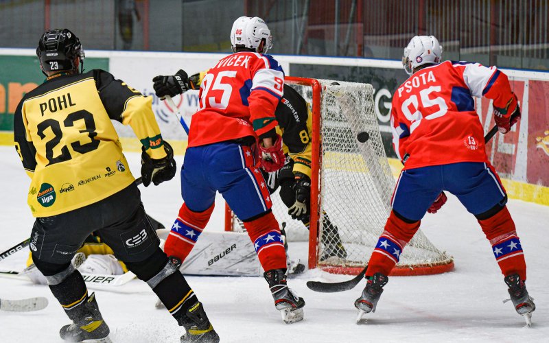 Naopak v 52. minutě musel domácí bek Hunkes řešit nemilou stuaci s hostujícím Bílkem. Ten nabral rychlost a směr a s navýšením na hokejce se vyřítil přímo na Jekela. Zkušený třebíčský zadák mu zakončení nedovolil.