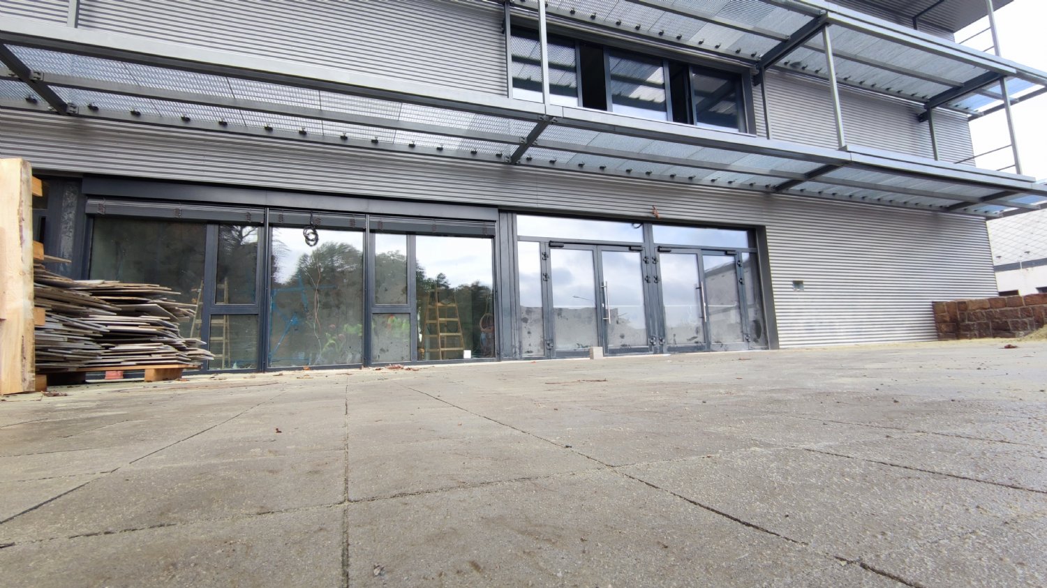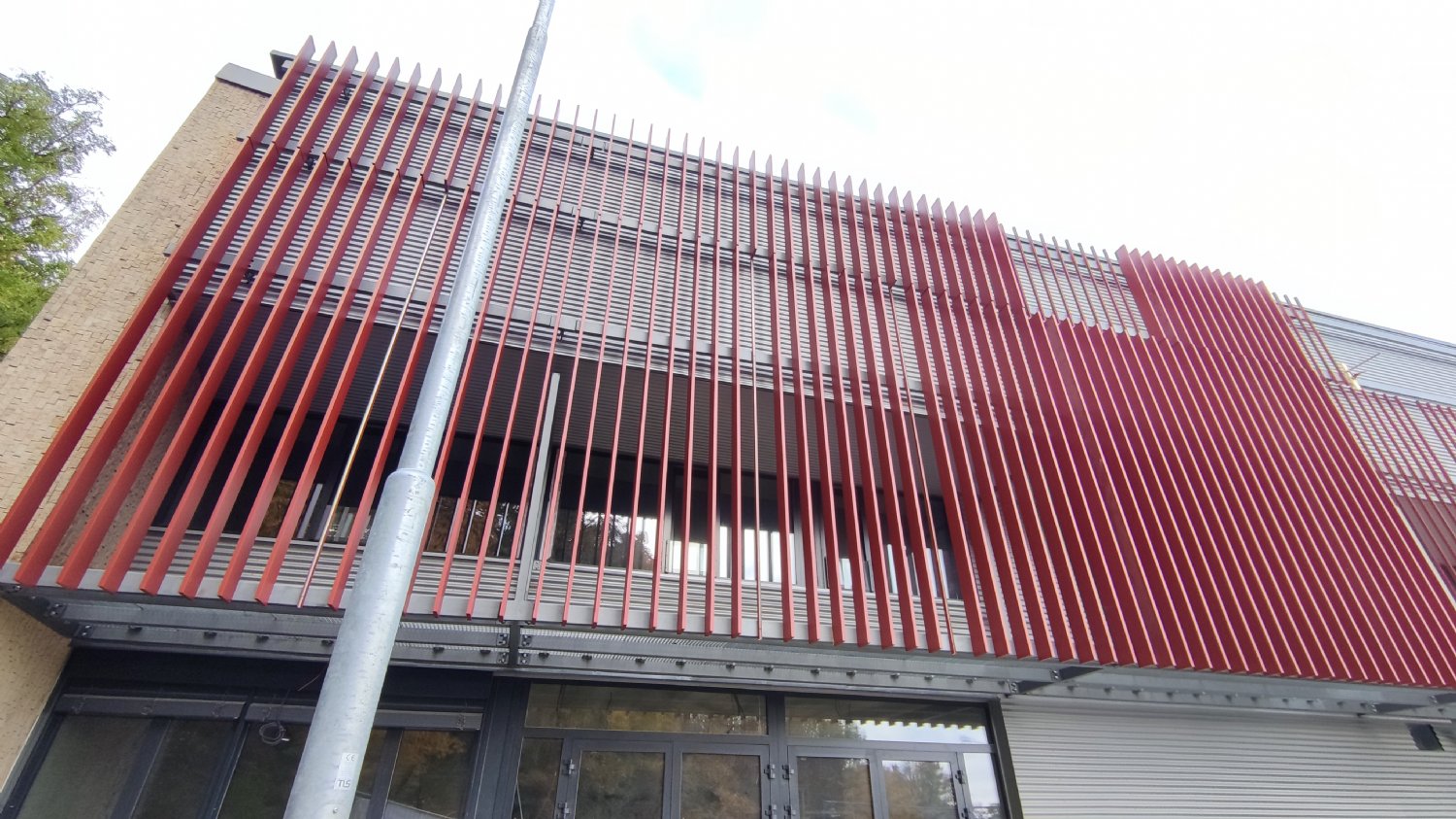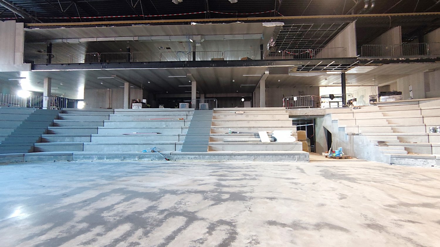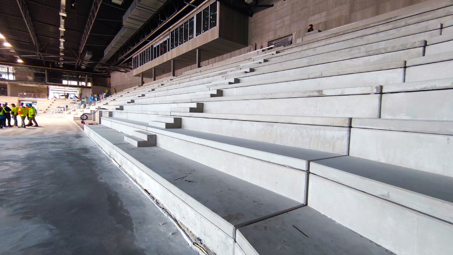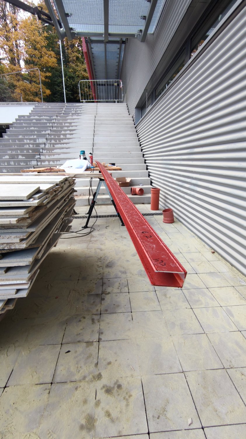 Detailní pohled na jednu z lišt, která bude brzy namontována a také na nové schodiště, které propojí dolní i horní vstupy na stadion