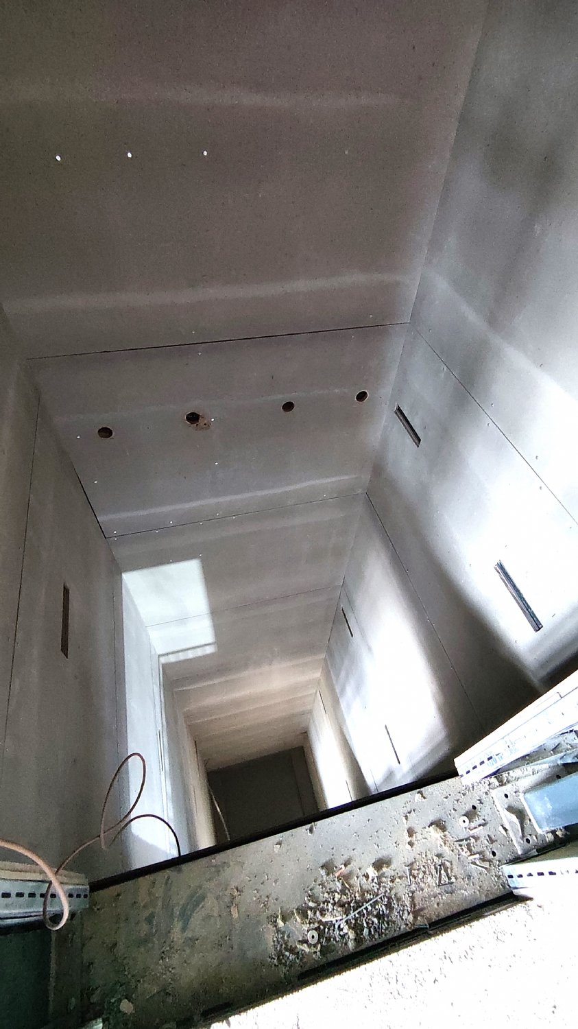 Do VIP prostor a na ochoz tribun se dostanete pohodlně výtahem, toto je jeho zatím prázdná šachta