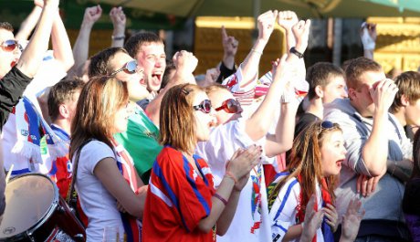 Také domácí hráči se sjeli k povzbuzení před vlastní bránou.