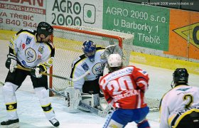 V úvodu druhé části vyvolala rozruch v hledišti teč najíždějícího třebíčského forvarda Balána, který však z těsné blízkosti minul Jarinovu bránu. Stejný muž stál čelem Jarinovi i v 33.minutě. Tentokrát si Jarina připravil lapačku přesně do místa, kam Balán tečoval odražený puk. I nadále držel Jarina perfektními zákroky svůj tým. Domácí hráči se snažili protlačit puk za jeho záda, ale kouzelník v bráně Kadaně si udržoval čisté konto. O dvě minuty později vyrazil střelu Pšurného přímo před sebe, puk dokázal bleskově zalehnout a domácí útočníci už jej nedokázali protlačit za brankovou čáru. V minutě šestatřicáté se však musel blýsknout i domácí Luňák, když se hostující Hobl dostal do samostatného nájezdu i s obráncem v zádech. Třebíčský gólman jej perfektním rozštěpem vychytal. Velmi blízko prvnímu gólu byli domácí dvě minuty před koncem druhé třetiny. Agilní Gulaš poslal na Jarinu puk po ledě, ten jej ale dokázal zastavit těsně před brankovou čarou bruslí. I po druhé třetiny se obě mužstva odebrala do kabin za smírného stavu 0:0.