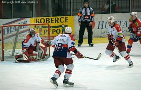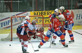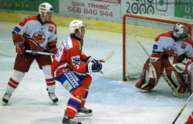Derby mezi Horáckou Slavií Třebíč a Havlíčkovým Brodem bylo bohaté na šance a hned tu první měl domácí Kubica, který však neuspěl střelou mířenou mezi Nerudovy betony. Když ani o chvíli později neuspěl před hostující brankou nebezpečně dorážející Lukáš Handlovský dostali se ke slovu také Rebelové z Havlíčkova Brodu, kteří se sice na delší dobu usadili v obranném pásmu Horácké Slavie, nedokázali z toho však vytěžit žádnou nebezpečně vyhlížející šanci. Větší problémy nadělala domácímu Luňákovi střela ze 7. minuty, kdy okamžitě po vhazování vypálil na domácí klec Havlíčkobrodský Ondráček. V čase 6:17 se poprvé v zápase zaradoval velmi slušně zaplněný třebíčský stadion. Od modré čáry vypálil velmi přesně Lukáš Vomela a Horácká Slavia slavila se ujala vedení v zápase. Ve 12. minutě nabídl domácí obránce Hrbáček hostujícímu celku přesilovou hru. Horácké Slavii se hra v oslabení podařila téměř na výbornou, soupeř se nedostal s kotoučem k větší blízkosti domácího brankáře. Ve 14. minutě mohlo být vedení Třebíče již dvougólové, ale děkovali brankářovi Nerudovi, který nejprve vyrazil střelu Michala Pšurného, který se ještě pokoušel o okamžitou dorážku, ale ani ta neskončila za zády hostujícího brankáře. Hosté udeřili až v 19. minutě. Borovanský nahrál od mantinelu před branku volnému Petru Jelínkovi, který pohodlně vyrovnal. Po úvodní třetině tak mužstva odcházela do šaten za nerozhodného stavu 1:1.Prostřední část utkání začali lépe Rebelové. Jelínek se pokoušel překvapit Luňáka efektivním objetím branky ale i u druhé tyče byl připravený beton domácího brankáře. Ve 23. minutě vypálil tvrdou střelu na Luňáka Brodský Kolář. Domácí strážce branky si poradil i s touto střelou, kterou vyrazil do ochranné sítě. Větší aktivita se Havlíčkobrodským vyplatila v 23. minutě. Vedení na stranu Havlíčkobrodských Rebelů strhl Lukáš Endál. O minutu později měl vyrovnání na hokejce třebíčský odchovanec Marek Laš, který v samostatném úniku nastřelil pouze tyč Nerudovi klece. Třebíč nasadila drtivý tlak. V 25. minutě neprotrhl smůlu Třebíče ani David Dolníček, jehož dorážka mířila do odkryté klece. Tentokrát jeho střelu zastavil mrštný skok po kotouči, který předvedl Stanislav Neruda. Až 26. minuta byla pro Horáckou Slavii Třebíč tou šťastnou. Po Ščerbanově přihrávce pálí od modré Denis Rehák. Neruda tuto střelu pustil za svá záda. Po této vstřelené brance se jakoby obě mužstva již tolik netlačila do útoku a jakmile se o to jeden z týmů pokusil byla vždy připravena obrana, která nepouštěla svého soupeře k větší šanci. Až v 37. minutě namířil střelu z útočného pásma na domácího brankáře Šulc, ale jeho střelu pokryl Filip Luňák svoji lapačkou. Pár vteřin před skončením druhé třetiny ujel domácím obráncům Brodský Varga, ale parádním zákrokem ho vychytal Luňák. I po druhé části hry bylo skle nerozhodné tentokrát 2:2.