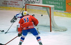 Jako první se v zápase pokusil vypálit domácí Rostislav Novák, jeho střela však těsně minula pravou tyčku hostující klece. Ve 2. minutě zápasu hlavní rozhodčí poslal na dvě minuty jednoho hráče domácích a také hráče Nového Jičína, takže jsme viděli hru ve čtyřech na obou stranách. První velkou šanci Nového Jičína měl hostující Pavlík, když si kličkami položil domácího Pavla Míču. Konečné zakončení se mu nepovedlo a domácí brankář dokázal jeho střelu ukrýt do své lapačky. Zápas se jenom hemžil šancemi, důkazem toho byla i další neproměněná šance. Třebíčský Lukáš Nahodil se ocitl nikým nehlídaný v mezikruží útočného pásma. Zbývalo mu pouze překonat brankáře, ale tvrdou střelou netrefil klec hostujících hokejistů. Třebíč si v první třetině svoji aktivitou vynutila první přesilovou hru zápasu. Domácí v přesilovce zamčeli soupeře v obranném pásmu. Jedinou věcí, kterou z přesilové hry využili bylo další vyloučení soupeře, takže se domácím naskytla i zkrácená možnost mít na ledě o dva muže navíc. Velký tlak na hostující hráče pokračoval, ale branku se Třebíčským vstřelit nepodařilo. V 10. minutě se Horácká Slavia dostala do akce dva na jednoho. Nahrávku Lukáše Dostála zpracoval Petr Burián, který následně zakončil pouze do levé tyče branky. V 11. minutě si také hosté zahráli přesilovou hru. Vyloučen byl domácí Hobza, který navíc k dvouminutovému trestu obdržel desetiminutový trest za nesportovní chování. Nový Jičín ani v přesilovce nenadělal domácím mnoho práce a strážce domácí klece Pavel Míča skoro ani nemusel zasahovat ostatně tak tomu bylo po většinu utkání. Ve 13. minutě hráli další přesilovku Třebíčští. Tentokrát ji dokazal zúžitkovat Jiří Burian, který hostujícího brankáře překvapil střelou z téměř nulového úhlu z levé strany. Jedinou větší starost dělalo domácímu brankářovi nahození od Tomáše Adamce v 19. minutě. Nahození málem Míčovi zapadlo do branky nakonec situaci zachránil basebalovým úderem kotouče pryč od branky.I na začátku druhé části hry hráli domácí velice aktivně. Nepolevili od předvedené hry v úvoodní části a svoji dobrou hrou si vysloužili další přesilovou hru. Tentokrát Novojičínští hokejisté dobře bránili a domácí nepustili do žádné vážnější akce, která by mohla navýšit třebíčské vedení. Od 25. minuty se hosté museli mít opět na pozoru, protože Třebíč vyvíjela na soupeře další útočný tlak, který zakončil až opět trochu šťastným gólem domácí Lukáš Dostál, který nahrával před branku volným spoluhráčům, ale jeho nahrávku si do branky srazil jeden z hostujících obránců. O dvě minuty později skóroval další z Třebíčských řad. Již na 3:0 zvyšoval Lukas Němec. Ve 35. minutě hrála Třebíč v početní výhodě. Třebíč využila přesilovku za minutu. Souhru Viléma Buriana a Petra Buriána zakončoval pěknou střelou na rozdíl čtyř branek druhý jmenovaný hráč. A abychom byli objektivní popišme také akci hostů. Ve druhé třetině jich bylo podobně jako v té první pomálu a Míča se občas musel hbytě rozcvičovat v brankovišti, aby byl připraven na střelu. Ke konci druhé třetiny vyzkoušel Míču hostující Pavlík. Střela skončila v lapačce domácího strážce branky.