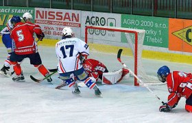 První závar před domácí brankou zlikvidoval na brankové čáře Petr Ondrůj. Ani Semorád ho zblízka neprostřelil. První přesilová hra se naskytla aktivnějším hostům, ti však nic nevymysleli, naopak Klíma přihrával v pádu zadovkou Vítkovi, který však minul pardubickou branku. Tentýž hráč mohl poprvé rozjásat přítomných dvě stě diváků v sedmé minutě, když se ocitl osamocen před Landsmanem, ke smůle domácích však na něj nevyzrál. Radost na tvářích červenobílých přinesla až dvojnásobná přesilová hra, kterou využil Marek Kundela, když dorazil Burianovu střelu – trefil se přesně k tyči – 1:0. Brejkovou situaci volající po vyrovnání spálili Semorád a Nykl, když prvně jmenovaný volil střelu, se kterou si Ondrůj poradil. Na druhé straně nebezpečně tečoval Dostál Vlašínovu střelu, puk však skončil mimo, teč Kuriala pak zneškodnil Landsman v brance Pardubic. Ondrůj dokázal vyrazit Bláhovu střelu po přihrávce Kauta v útočném pásmu, po další akci však už kapituloval. Na 1:1 srovnal Karel Sodomka, který se z úhlu natlačil před branku a poslal puk pod Ondrůjem za brankovou čáru. Hosté se však neradovali příliš dlouho. Po necelých dvou minutách obral Nahodil za brankou brankáře o puk, z boku ho přihrál před brankoviště Burianovi a ten si Landsmana položil a v pádu zasadil hostům střelou vedle betonu druhý úder – 2:1. Pardubičtí ještě do konce třetiny zahrozili, Popler si sjel mezi kruhy a pálil z první, Ondrůj však změnu skóre nepřipustil.I začátek druhé třetiny patřil hostům, Krejnus pálil od modré, Ondrůj však našel kotouč mezi chrániči. O chvíli později protestovali hosté po vyloučení svého hráče tak vehementně, že si vykoledovali další dvouminutový trest pro hráčskou lavici. Nabídnutou dvojnásobnou přesilovou hru junioři Horácké Slavie opět využili. Landsman sice vyrazil Kadelovu střelu od modré, na Nahodilovu přesnou střelu k tyči z mezikruží po souhře s Burianem a Čtveráčkem se však už jen ohlédl – 3:1. I nadále měl hostujících brankář plné ruce práce. Se štěstím udržel Kesnerovu střelu z otočky. Když už se pardubičtí junioři dostali do šance, ztroskotali na bezchybném Ondrůjovi. Marně se před něj natlačil Dobiáš, o nic lépe si nevedl Jindřich, který pálil z kruhu. Třebíčský brankář spálil Pardubickým i další tutovku, když zneškodnil přečíslení dva na jednoho v podání dvojice Dobiáš – Kousal. Jelikož hosté nabídnuté šance nevyužívali, udeřili počtvrté domácí. Přečíslení tři na dva v podání trojice Kundela – Nahodil – Burian sice Landsman zneškodnil, když vyrazil Burianovu střelu z první, po vyhraném buly ale nedosáhl na přesný projektil Klímy, který si najel z druhé vlny – 4:1. Zblízka mohli zvýšit Eduard Kadela i Neměc, ani jeden však pardubického brankáře nepřekonal. Kurial poté těsně minul, když tečoval Hobzovu střelu od modré, do kabin se tak odcházelo za stavu 4:1 pro domácí.
