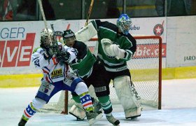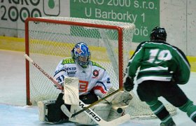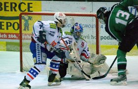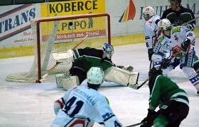 První šanci utkání spálil mladoboleslavský Janček, když se neprosadil z mezikruží. Na Burgra v brance domácích nevyzrál z obdobné pozice ani Antončík. Třebíč se osmělila při vyloučení hostů – Dostál pálil z kruhu, Fikrta však neprostřelil, aby se o pár chvil později uskutečnil závar před boleslavskou brankou, kde hostující brankář s vydatným přispěním svých obránců likvidoval puk mířící do odkryté klece… V šesté minutě to zkoušel přes obránce Němec, puk však těsně minul boleslavskou branku. Na druhé straně se ocitl osamocen před Burgrem Chochola, střelou z první však na třebíčského brankáře nevyzrál. Ani Velechovský, který pálil z kruhu, recept na muže v masce domácích nenašel. Branka padla až v čase 16:20, když Malý vystřelil od modré a trefil vlastního hráče, od něhož se puk odrazil za bezmocného Burgra, který už nemohl zareagovat – branku si touto cestou připsal Anatolij Protasenja – 0:1. Když pak Fila v poslední minutě první dvacetiminutovky zblízka minul, odcházelo se do kabin za jednobrankového vedení Mladoboleslavských.Při vyloučení hostů to zkoušel Burian – vypálil tvrdě, ale nad. Po ukončené přesilové hře domácích převzali otěže hosté. Jaroměřský pálil od modré, brejk dva na jednoho prováhal Loskot, osamocen před Burgrem se ocitl Velechovský, ani on však nezměnil skóre zápasu. Když pak obral Nahodil hostujícího obránce o puk a nabídl žabičkou tutovku Vítkovi, který ji nevyužil, udeřili jako blesk z čistého nebe podruhé hosté – Jaroměřský prostřelil Burgra mezi betony – 0:2. Třebíč musela zabrat, Fila zblízka ani Hobza od modré recept na bezchybně chytajícího Fikrta nenašli. Když pak vychytal Burgr Hrdličku, prosadili se i Třebíčští – Vilém Burian prostřelil z kruhu Fikrta rovněž mezi betony – 1:2. Hosté chtěli znovu utéct na rozdíl dvou branek, proti byl Burgr, když vychytal zblízka Tondru a nadvakrát si poradil i s Chamrádem.