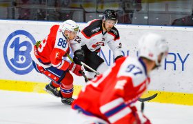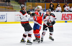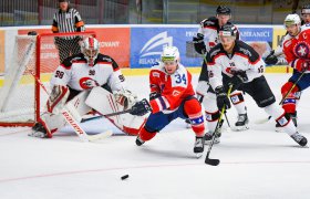 Horácká Slavia začala druhou periodu v početní výhodě a dokázala se i usadit v útočném pásmu. Dominik Gorh však nadále odolával nájezdům družiny Kamila Pokorného. Především díky tomuto muži Orli přečkali početní nevýhodu bez újmy na skóre.