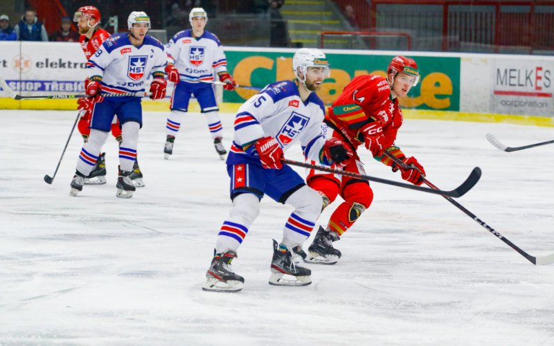 Souboj v Prostějově začal poměrně vlažně. Inu oba celky už měly jistotu účasti v play off a nikdo se nechtěl před vrcholem sezony zbytečně zranit. První gól vstřelili domácí Jestřábi, když se švihem od modré čáry prosadil ve 4. minutě Jan Bartko. Na straně Třebíče mohl kontrovat Klímek – neuspěl. Další příležitost Prostějova měl na své holi Illéš, ale ani on puk za Pavla Jekela nedostal.