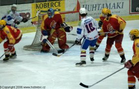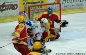 V úvodu první části horáckého derby měli více ze hry domácí. Ve 4.minutě dostali příležitost hry pěti proti třem a v největší šanci se ocitl Tomáš Filala, který promáchl před prázdnou jihlavskou bránou po přihrávce Jiřího Buriana. O dvě minuty později z mezikruží tvrdě vypálil Kurial, ale puk z jeho hole za brankářem Svobodou neskončil. Na druhé straně se střelou mezi betony prezentoval jihlavský Dušátko, ale Radim Ludvík stačil nohy zavčas srazit a kotouč za svá záda nepustil. Domácí dostali výhodu další přesilové hry v osmé minutě, ale ani bomba Tomáše Jedličky, ani dorážka Marka Laše k otevření skóre nepřispěly. Po naskočení Michala Blanáre zpět do hry se v dobré příležitost ocitl Vaškovič, Ludvík však měl betony znovu na svém místě. Ve 12.minutě se zleva snažil střelou zápěstím prosadit Vaškovič, třebíčská brána zatím zůstala nedobyta. V obrovské příležitosti o chvíli později se sám před Ludvíkem zjevil Jaroslav Kružík, leč bravurní zásah domácího gólmana Jihlavanům radost nepřinesl. V 15.minutě se ihned po vzahování do šance dral Lukáš Dostál, Svoboda mu ovšem puk v poslední chvíli vypíchl. Osmnáctá minuta přinesla Třebíči možnost přečíslení dva na jednoho, Petr Burián volil místo přihrávky střelu, ale tu vytlačil Svoboda ramenem. Z následující akce se střelou od modré čáry snažil Ludvíka překonat Jiří Man, třebíčský muž v masce byl v pohotovosti. V závěru první třetiny se zpoza jihlavské brány vyřítil Jiří Krčál, hostující obrana se o něj však postarala a v pádu se ke kvalitnímu zakončení nedostal.Začátek druhé části se hrál ve vlažnějším tempu a k výraznější šanci se dostal až ve 26.minutě Vaškovič, které obkroužil Ludvíkovu bránu, ale bekhendem ho nepřekonal. Poté dostali hosté výhodu přesilové hry a Lukačovič vyslal na třebíčskou bránu jedovku, která však do brány naštěstí pro domácí neprošla. Ve 30.minutě šli Třebíčští do třech a výhodu dvou mužů v poli využil Jan Dušátko, jenž nechytatelně zakončil po střele obránce Giby - 0:1. V této fázi hosté domácí přehrávali a další příležitost měl Blanár snažící se sám skórovat, Ludvík ale jeho pokus zlikvidoval. Nebezpečnou střelu si poté připsal Petr Franěk, Svoboda si povedeným zákrokem udržel čisté konto. Domácí obraně dělala velké starosti útočná trojice Vaškovič - Blanár - Dušátko, která se několikrát za sebou dostala do slibných pozic, ale bez gólového efektu. V čase 37:15 se do dobré možnosti dostal Jiří Krčál, brankář Dukly jeho pokus vyrazil nad svou bránu. Koncem druhé třetiny byla třebíčská snaha o vyrovnání utlumena vyloučením Tomáše Jedlička a domácí se museli bránit v dobře provedeném zámku Dukly. V nejlepší příležitosti se ocitl agilní Vaškovič, avšak střelou z těsné blízkosti Svobody se do střelecké listiny nezapsal. Poté si ještě na přihrávku od modré najížděl Vlk, ale protože ani jeho snaha změnu stavu nepřinesla, šlo se do kabin za stavu 0:1.