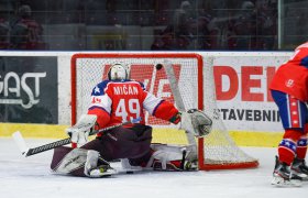 Třebíč srovnala na začátku 27. minuty. Martin Šťovíček vystřelil přes obránce, kotouč se od Michajlových betonů příhodně odrazil znovu na hokejku Šťovíčka, který napodruhé už hostujícího gólmana prostřelil.